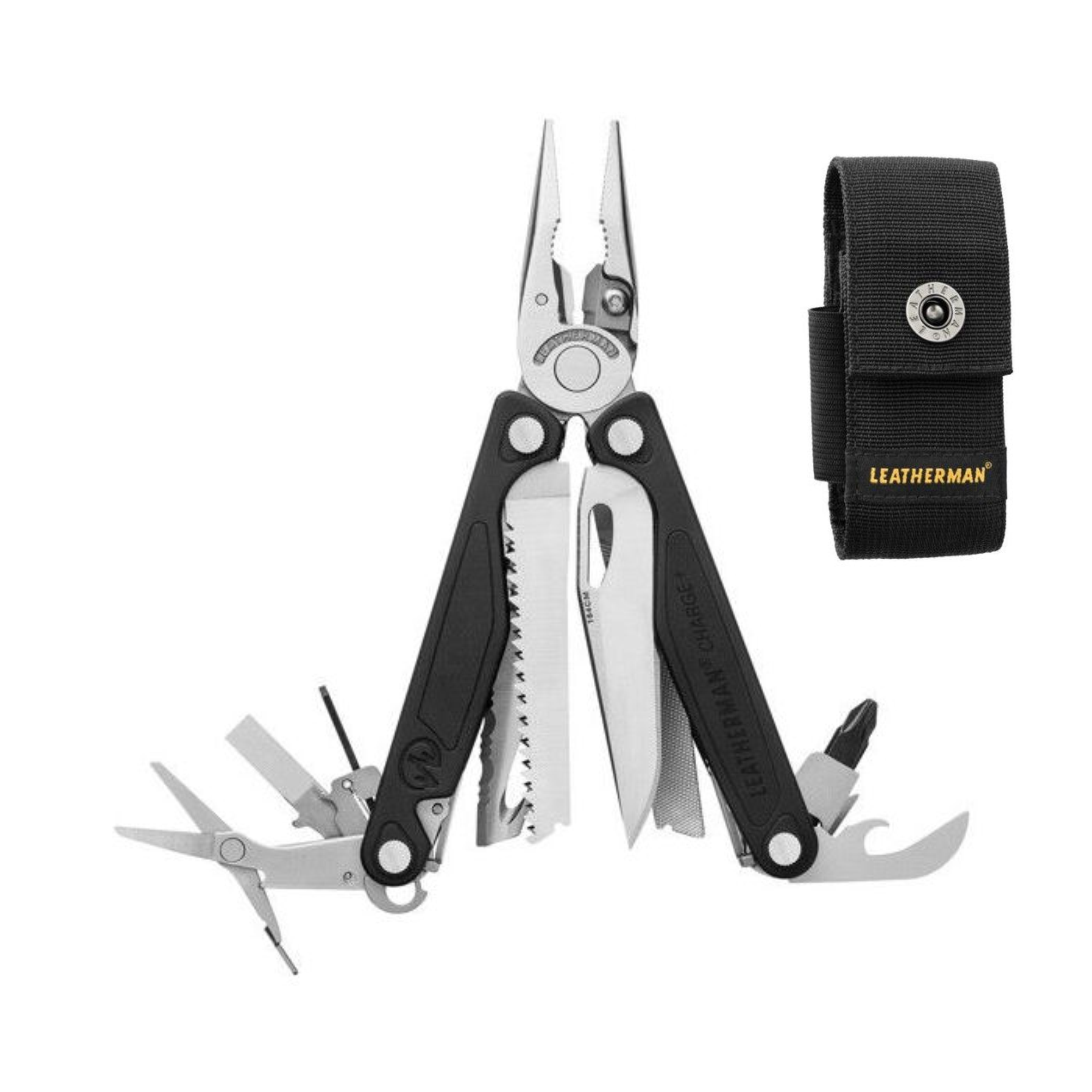 Charge+ 4-Pocket nylonkotelolla Leatherman Charge Plus on päivitetty versio Charge AL -mallista. Sahaterälaitaiseen veitseen on lisätty leikkuukoukku ja sivuleikkurien terä ovat nyt vaihdettavissa.