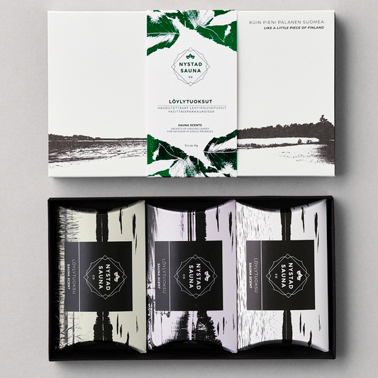 • Valmistettu SuomessaNYSTAD SAUNA LÖYLYTUOKSU LAHJAPAKKAUS