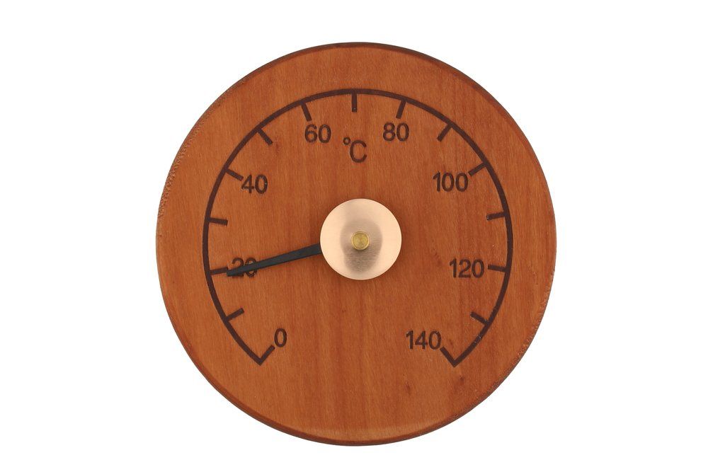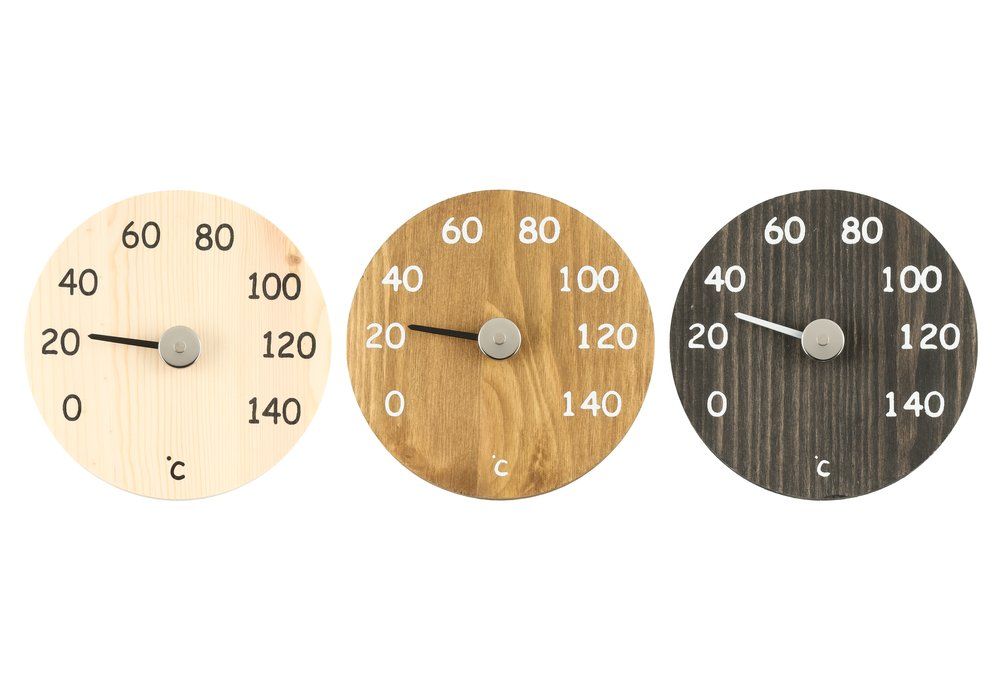 319205Saunan lämpömittari lämpökäsiteltu leppä Perinteinen pyöreä puinen saunamittari.