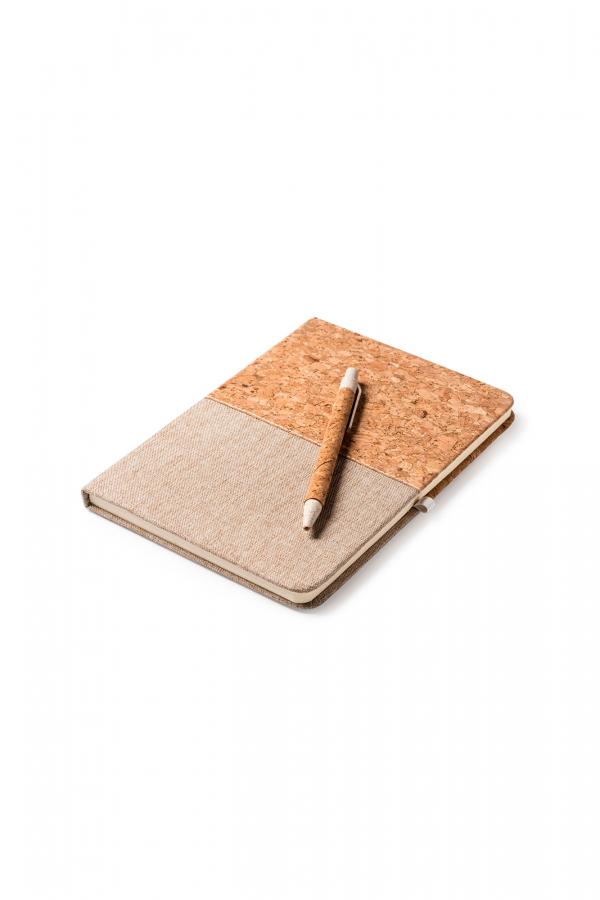 MINI kierrätetystä muovista valmistettu pehmeäkantinen muistikirja ja kuulakärkikynäsetti