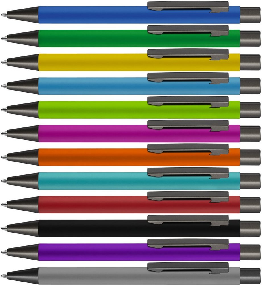 NEW JERSEY Soft touch kuulakärkikynä Ohut metallikuulakärkikynä kumipinnoitteella ja sinisellä musteella. Logosi kaiverretaan klipsin alapuolelle. NEW JERSEY Lasermerkattuna 200kpl - 1,76€/kpl 300kpl - 1,56€/kpl 500kpl - 1,35€/kpl 1000kpl - 1,17€/kpl 2000kpl - 1,08€/kpl Muut määrät: kysy tarjous