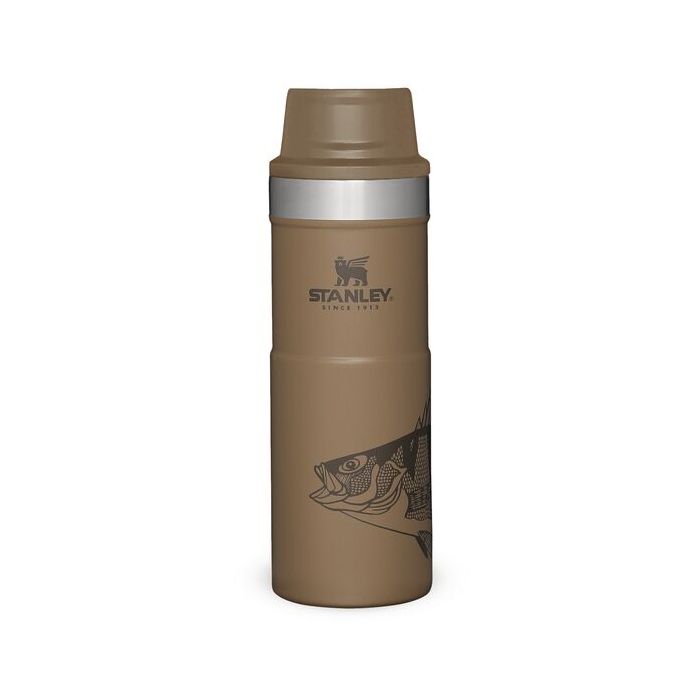The Trigger-Action Mug 0,47L, ahven Luotettava klassikko hieman suuremmassa koossa! Mukin ulkomitat ovat leveyden suhteen samat kuin 0,35 litran termosmukissa, joten muki pysyy kädessä yhtä helposti ja luotettavasti kuin pienempikin Trigger-Action malli. Lisätilaa höyryävän kuumalle juomalle on saatu korkeutta lisäämällä. Erinomainen termosmuki niin kuumalle kuin kylmällekin juomalle ympärivuotiseen käyttöön. Sopii vähän pidemmällekin kalastusretkelle, autoreissulle, tai toimiston pöydälle työpäivää piristämään. Tämä erityisesti kalastajille suunnattu, ahven-kuvioitu termosmuki on Peter Perchin käsialaa.