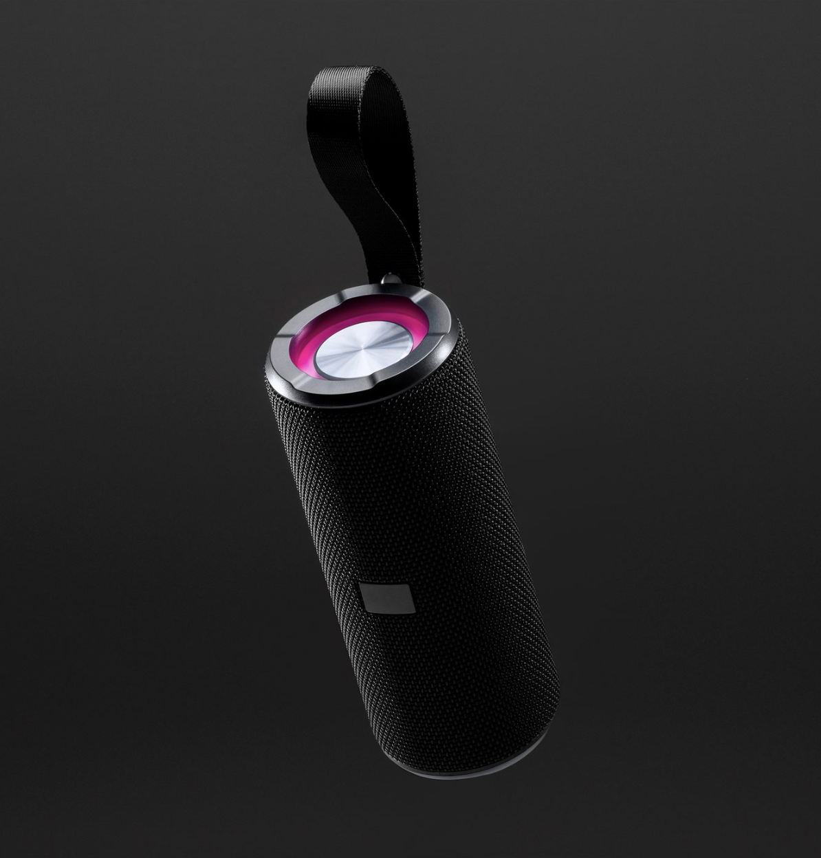 Bluetooth kaiutin Langaton kaiutin ABS-muovista ja RPET-kankaasta. Bluetooth 5.0. Mukana yksi ladattava 800 mAh:n litiumioniakku. Mukana SD-korttiportti ja AUX/USB-kaapeli. Lähtöteho: 5 W, 3 ohmia ja 5 V. Toistoaika noin 3 tuntia