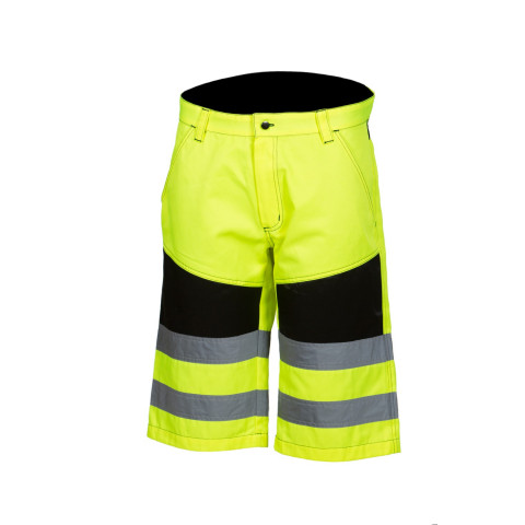 4325Huomiokeltaiset shortsit Materiaali: likaa ja vettä hylkivää beavernylon-kangasta. Materiaali huomioväreissä 80/20, polyesteri/ puuvilla. Kankaan paino 250 gr/m2.