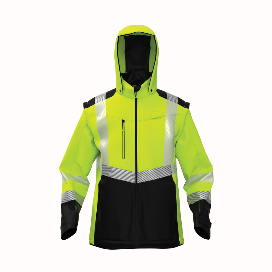 JK-TRANSF-C2-04BoSafety softshell takki irrotettavilla hihoilla. Vedenpitävä ja hengittävä softshell-takki.