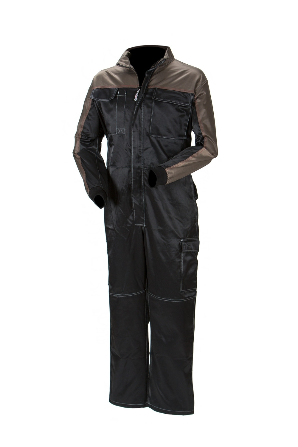 Rintataskut, oikealla esiinotettava henkilökorttitasku (pysty/vaaka), vasemmalla kynä -ja puhelintaskut. Etutaskut, joissa läpimeno omille taskuille, reisitasku, takataskut, hitsipuikko -/ mittatasku ja vahvistetut polvisuojataskut. Etulista. Suora, säädettävät hihansuu. Vasaralenkki ja puukkonappi suojalistan alla. Lahjeketjut.