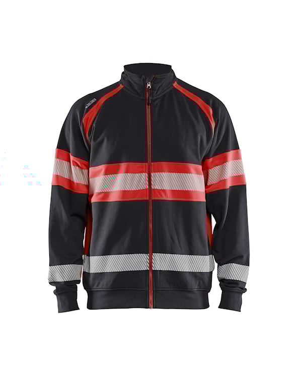 Blåkläder HIGHVIS COLLEGE Pehmeä ja mukava puuvillainen highvis college, jossa on katkonaiset heijaistimet joustavuuden ja hengittävyyden lisäämiseksi. Taskut sivuilla, korkea kaulus, pitkä vetoketju edessä sekä resorit helmassa ja hihoissa. Tummat alueet on 100% puuvilla ja heijastavat alueet 100% polyesteriä. Sertifioitu EN ISO 20471, luokka 1.