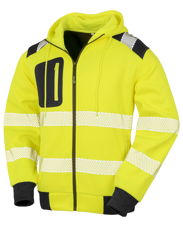 BLÅKLÄDER HUPPARI VETOKETJULLA Pehmeä ja mukava huppari, jossa tummat alueet on 100% puuvilla ja heijastavat alueet 100% polyesteriä. Katkonaiset heijastimet ja heijastavat yksityiskohdat lisäävät näkyvyyttä. Resorit alahelmassa ja hihansuissa sekä vetoketjullinen puhelintasku sisäpuolella.