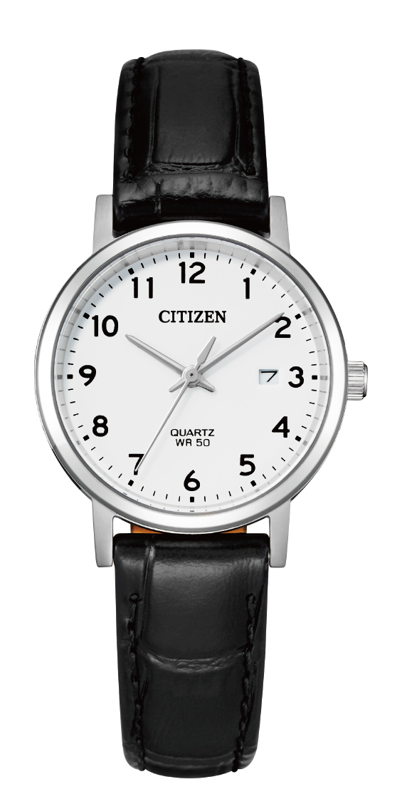 Citizen Quartz 28mm kello Citizen EU6090-03A on tyylikäs naisten rannekello. Kellossa on ruostumattomasta teräksestä valmistettu 28 mm leveä ja 7 mm paksu runko. Rannekkeena tässä mallissa on musta nahkaranneke. Tyylikästä valkoista kellotaulua suojaa mineraalilasi. Kellon vesitiiviysluokitus on 50m / 5atm eli kello on rajoitetusti vesitiivis. Citizen-kelloille myönnetään 2 vuoden takuu ja ne toimitetaan valmistajan alkuperäisessä pakkauksessa.