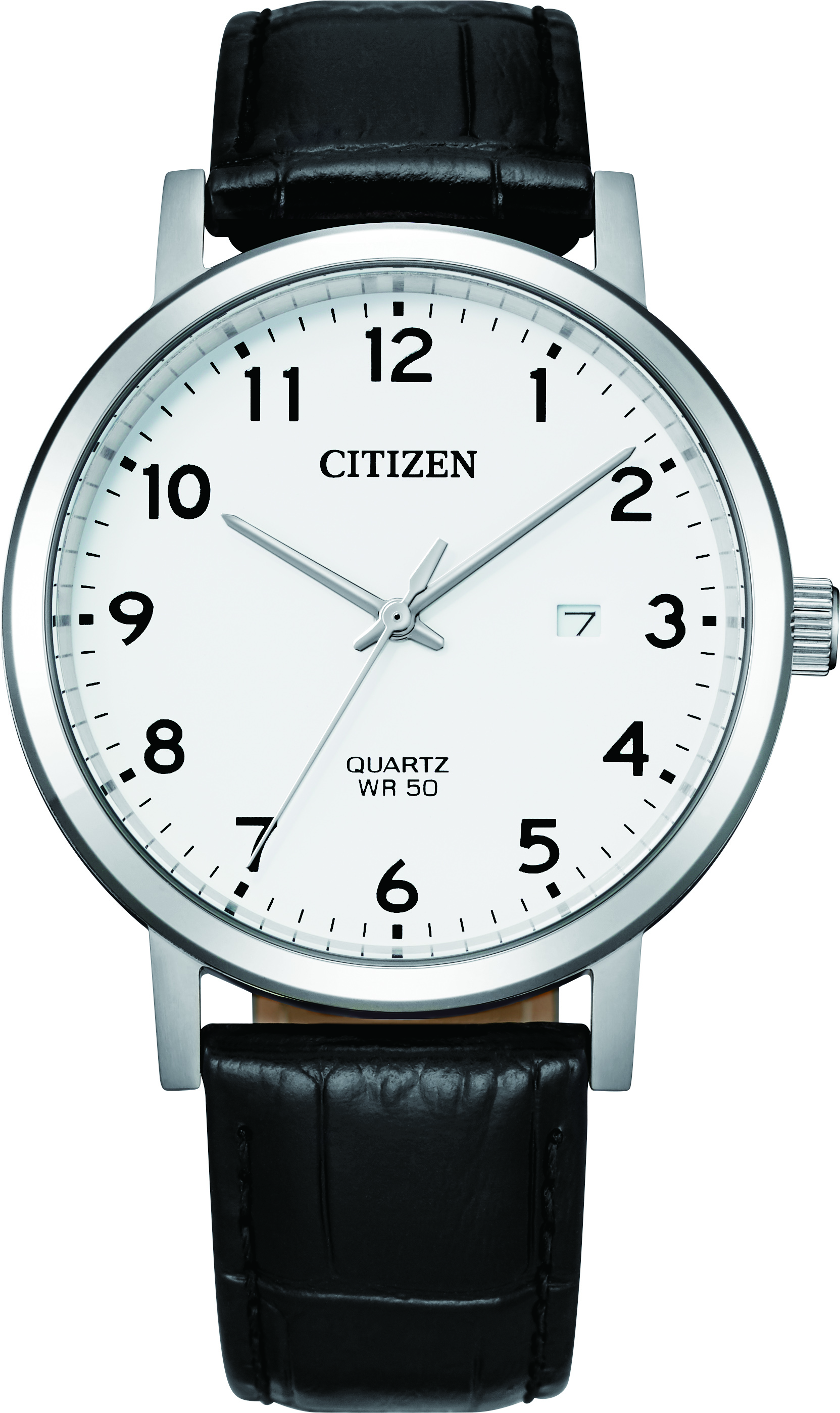 Citizen Quartz 40,5mm kello Citizen BI5070-06A on tyylikäs miesten rannekello. Kellossa on ruostumattomasta teräksestä valmistettu 41 mm leveä ja 8 mm paksu runko. Rannekkeena tässä mallissa on musta nahkaranneke. Tyylikästä valkoista kellotaulua suojaa mineraalilasi. Kellon vesitiiviysluokitus on 50m / 5atm eli kello on rajoitetusti vesitiivis. Citizen-kelloille myönnetään 2 vuoden takuu ja ne toimitetaan valmistajan alkuperäisessä pakkauksessa.