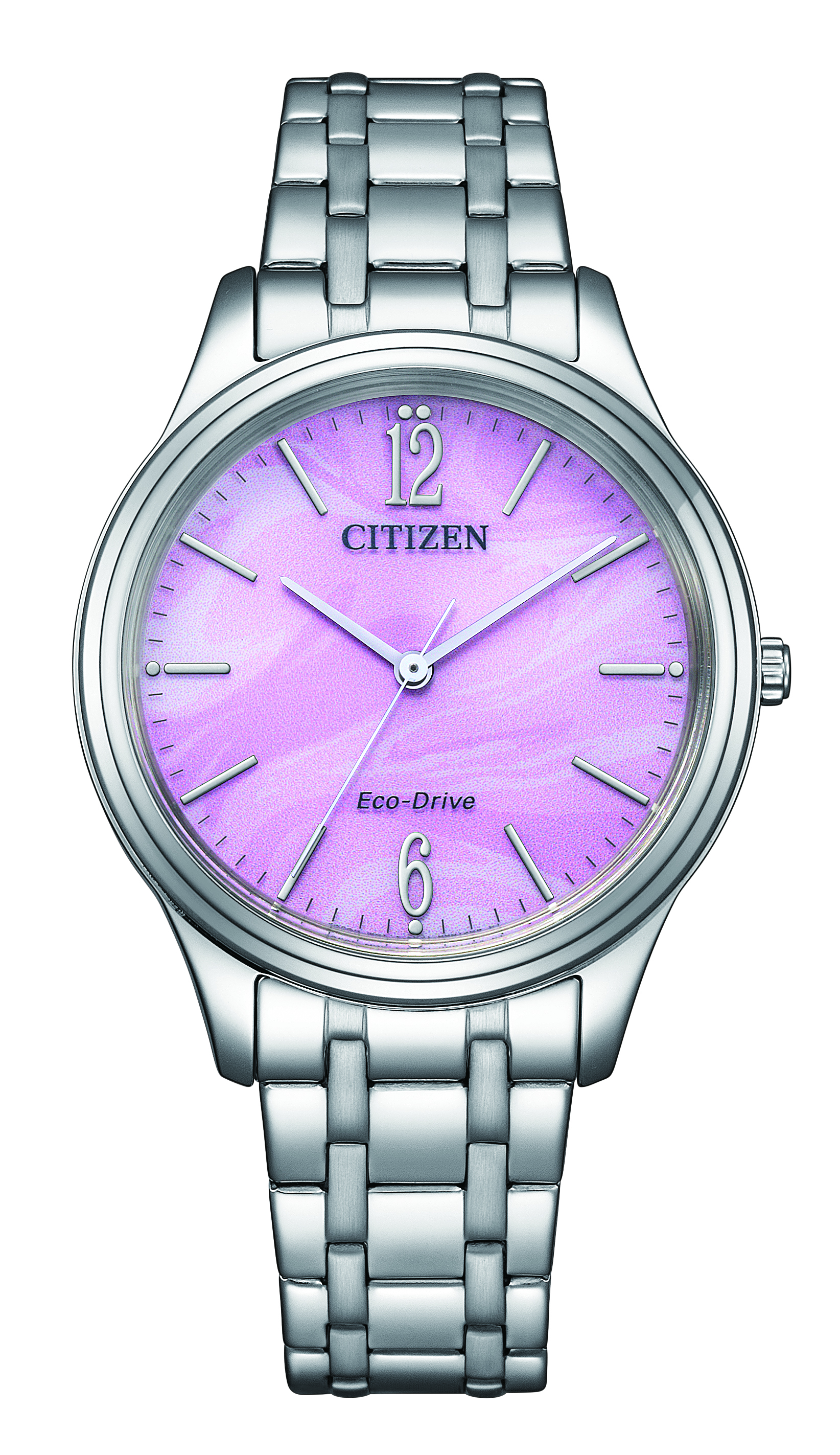 EM0411-71XCitizen Eco-Drive Elegance Citizen Eco-Drive Elegance EM0411-71X on klassista tyyliä huokuva naisten rannekello, joka on varustettu auringonenergialla toimivalla Eco-Drive-koneistolla, jonka tehoreservi on n. 6 kuukautta täyteen ladattuna. Kellon runko on valmistettu ruostumattomasta teräksestä ja se on leveydeltään 34 mm ja paksuudeltaan 7 mm. Kestävä mineraalilasi suojaa violettia kellotaulua, jossa on hopeanväriset viisarit ja indeksit. Citizen Eco-Drive Elegance EM0411-71X kokonaispaino on 70 grammaa ja se kuuluu vesitiiviysluokkaan 50m / 5atm eli se on rajoitetusti vesitiivis (uintia ei suositella).