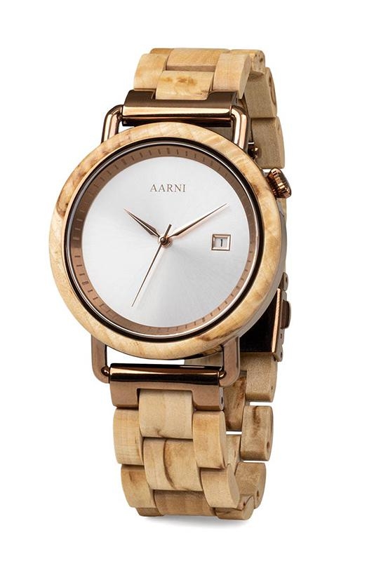 AA057KELLO VEGA SAARNI Kauneutta ja ikiaikaista viisautta. Aarni Vega kietoo yhteen upealla tavalla suomalaisen saarnen ja hennon ruusukultaisen taustan. Kellon sydämenä toimii tarkka ja laadukas sveitsiläinen Ronda-koneisto.
