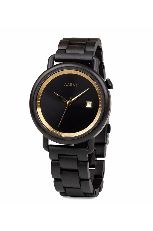 KELLO XO EEBEN Mystiikkaa ja klassista kauneutta. Eebenpuusta valmistettu Aarni XO yhdistää pyöreän kellotaulun kultaisiin yksityiskohtiin. Upea kello lumoaa kantajansa ja kääntää katseet sekä miesten että naisten ranteissa. Kellon sydämenä toimii tarkka ja laadukas sveitsiläinen Ronda-koneisto.