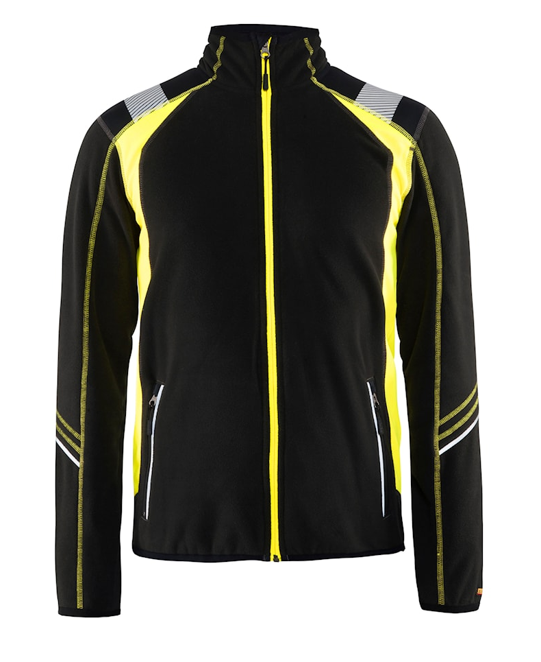 Blåkläder naisten microfleecepusero Naisten microfleece, joka toimii erittäin hyvin myös välikerroksen vaatteena. Heijastimia sekä huomioväristä kangasta lisäämään näkymistä. Istuvuutta ja mukavuutta varten hihoissa ja helmassa on joustavat resorit. Kaksi vetoketjullista sivutaskua.