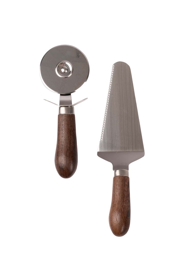 5018353Astrid pizzaleikkuri & piirakkalapio Riippumatta siitä onko pizza kotitekoinen vai ostettu tämä setti tarvitaan jokaiseen keittiöön! Settiin sisältyy pizzaleikkuri ja piirakkalapio. Setissä yhdistyy ruostumaton teräs ja kaunis suklaanruskea kahva wengepuusta. Yhdistelmä on jännittävä ja klassinen.