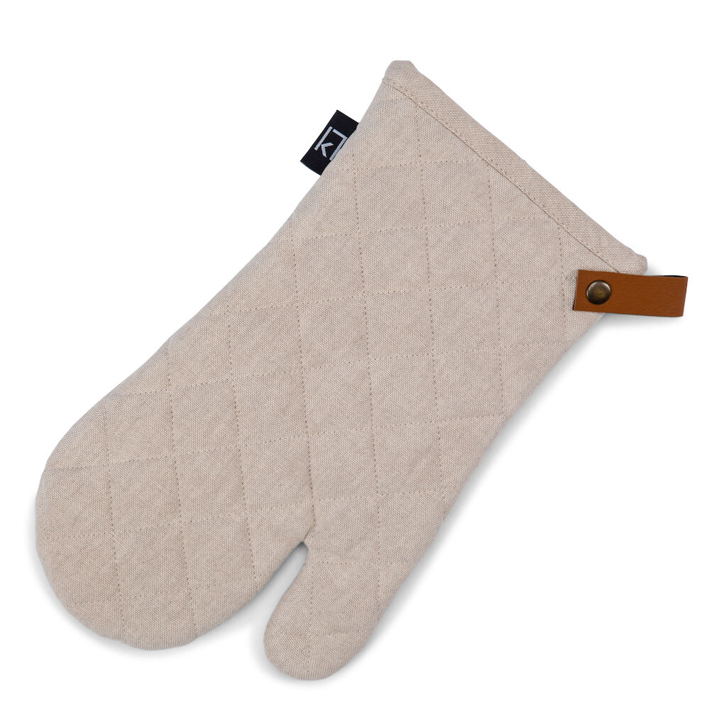 411219BBQ-hanskat Kosta Linnewäfverin grillikinnas on valmistettu 100 % puuvilasta. Grillikinnas suojaa kättä kypsennyksen tai paistamisen aikana. Sisältää tyylikkään yksityiskohdan PU-nahasta käsineen ripustamiseen.