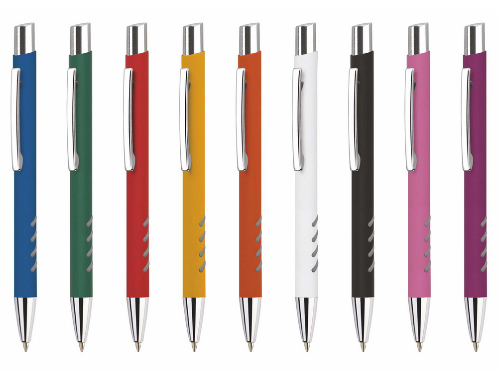 Santos kuulakärkikynä Raskas kynä tyylikkäällä muotoilulla! Laadukkaassa kynässä on iso metallikasetti sinisellä musteella. Santos Pen on saatavana 5 värissä mustalla kahvalla.